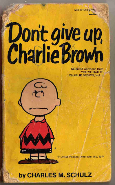 I pretty much learned to read from Peanuts Fawcett Paperbacks. I've accumulated a bookshelf full in my travels. This one here is one I had when I was a wee lad. It was chewed by my asshole dog who is probably responsible for my current racism toward canines. I also went through a period where I would circle my favorite letter in my books. This book was brought to you by the letter 'R'.
