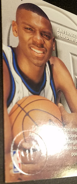 HERE'S A TERRIBLE PHOTO WHERE YOU CAN SEE THE EMBOSS. WHY DID UPPER DECK TO THIS TO A BASE CARD IN A SET THAT DOESN'T EVEN USE FOIL? EVEN PENNY LOOKS CONFUSED